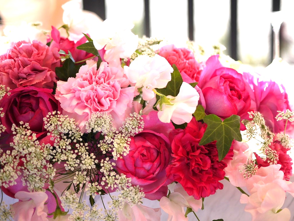 会場内のいたるところに置いてあった花々。2人の門出に華を添えてくれました!