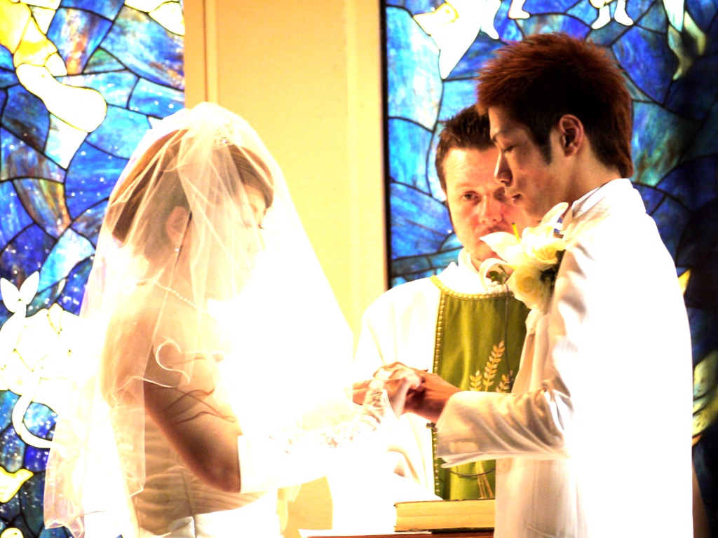 神父の熱い視線の向こうに二人の永遠の契りがありました