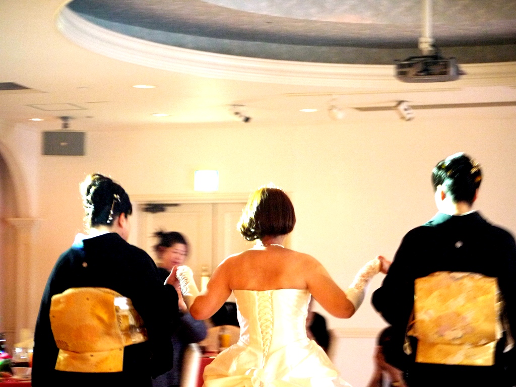 お母さんたちに手を添えられ退場する新婦!